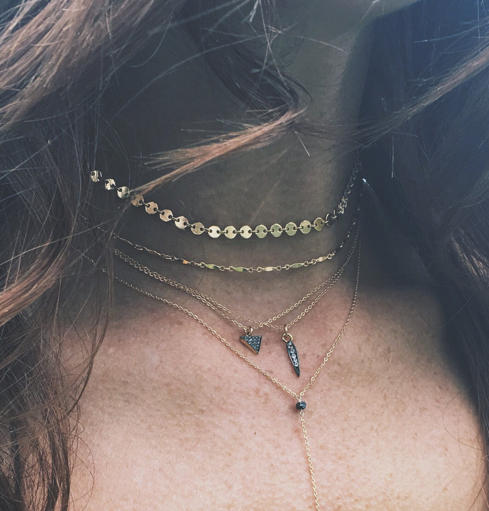 this game changing little baby is guaranteed to cause extreme obsession. Gold discs that reflect the light oh so perfectly. 3" extension with tiny herkimer Diamond detail allows for choker length or collarbone level wear. You're welcome ♥️