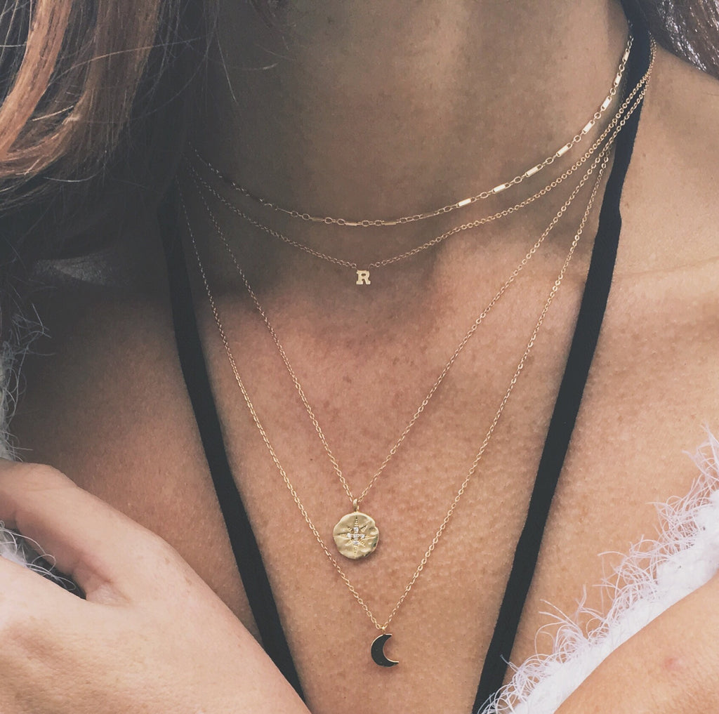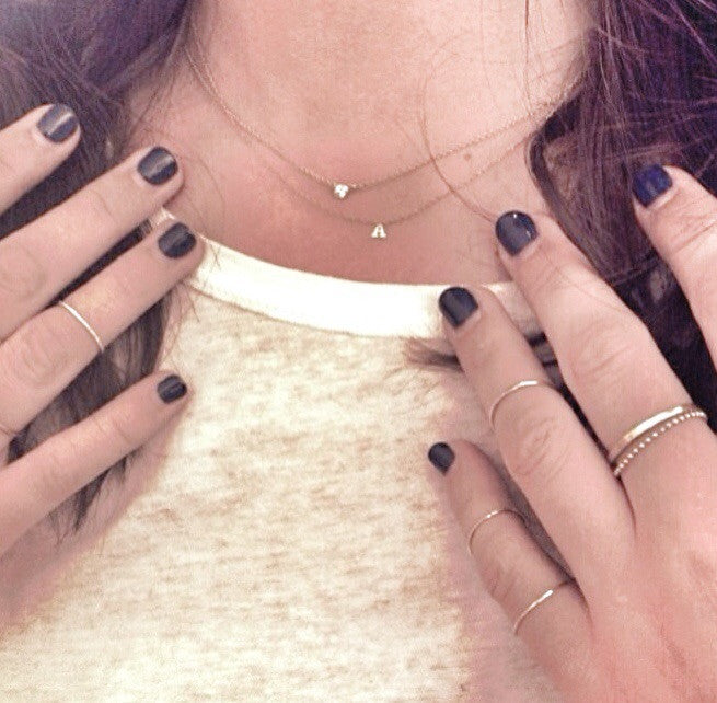 Lets just say it.. This might be the sweetest little everyday necklace ever. It will become a part of you. It will follow you everywhere. And you will let it. The perfect foundation for a layered look. Sits right at the collarbone level. Pure 14k letters on delicate (but very strong)14k gold filled chain.