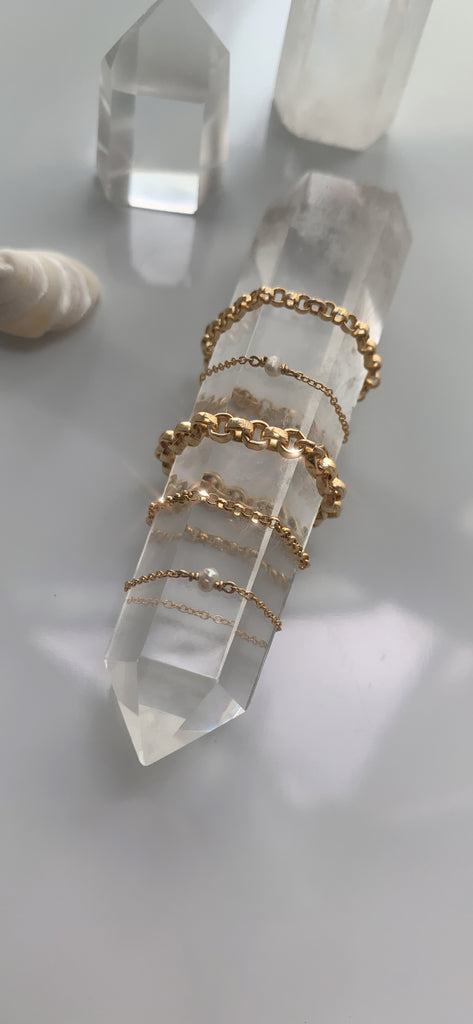 Our signature delicate 14k gold filled hammered chain with a tiny freshwater pearl.